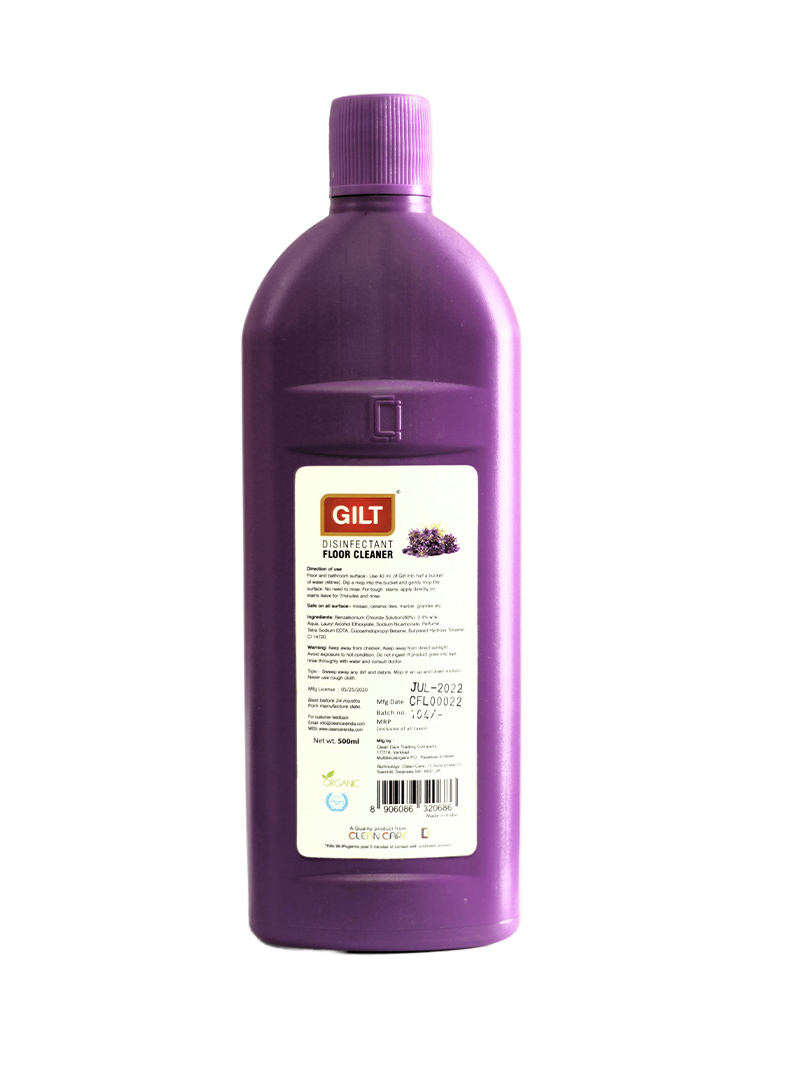 Gilt Disinfectant Floor Cleaner is designed to remove dirt, stains and bacteria from various types of floors. It is formulated with ingredients that can dissolve dirt and grime, while also disinfecting and deodorizing the surface. It contains surfactants, enzymes, fragrances and antibacterial agents for perfect germ free cleaning. Available in 3 variants (Fancy, Mint and Lavender).