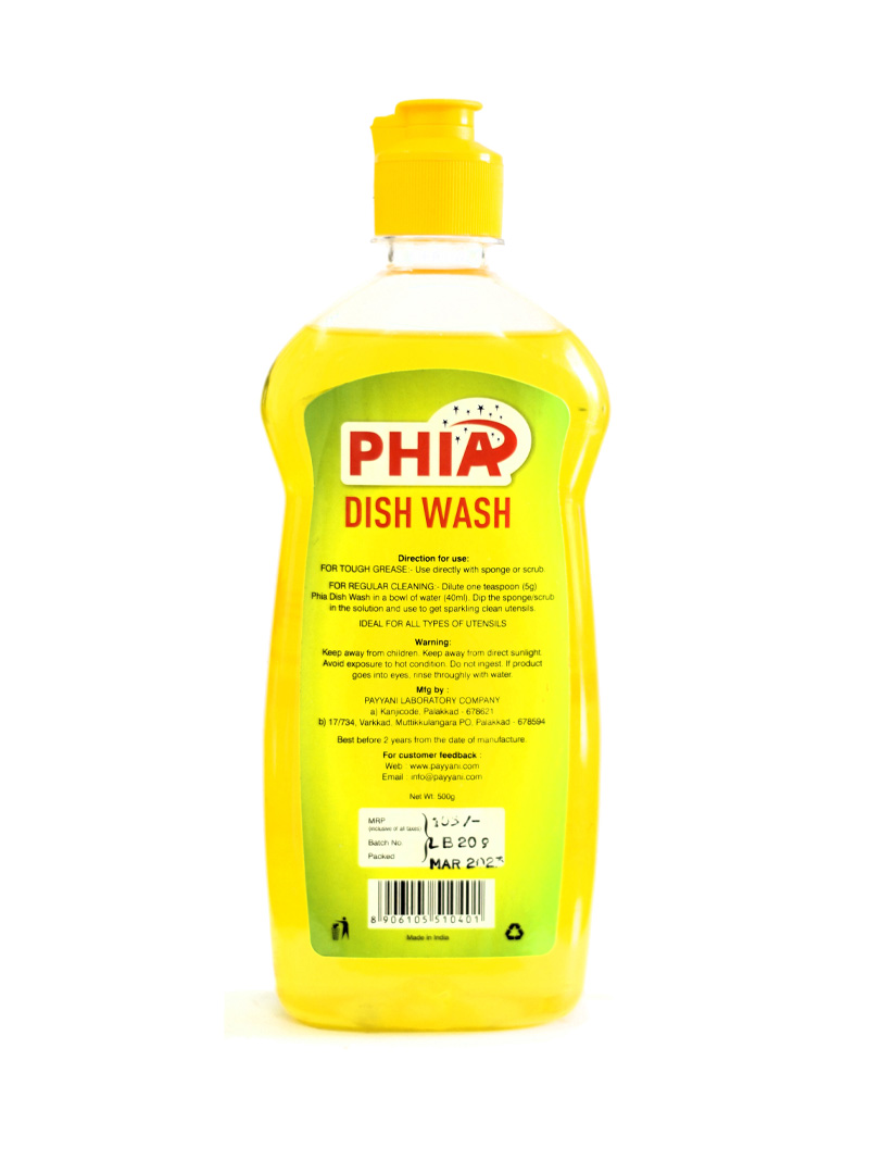 Phia is a quality brand from PAYYANI. Its liquid dish wash contains highly concentrated formula and along with strong stain removal technology, it ensures the removal of any tough stains from any utensils.